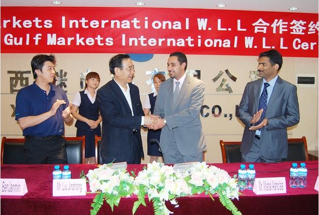 9月7日,公司與巴林GMI公司合作簽約儀式在公司三樓會議室舉行。公司董事長劉金忠和GMI公司的執行董事Mr.Mishal Alshoala,代表雙方在合作協議書上簽字,公司總經理助理劉軍、GMI公司運營經理Mr.A.T.biju等出席了簽約儀式。