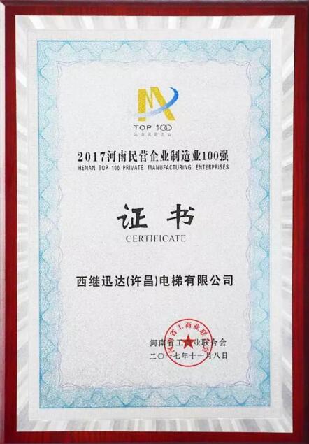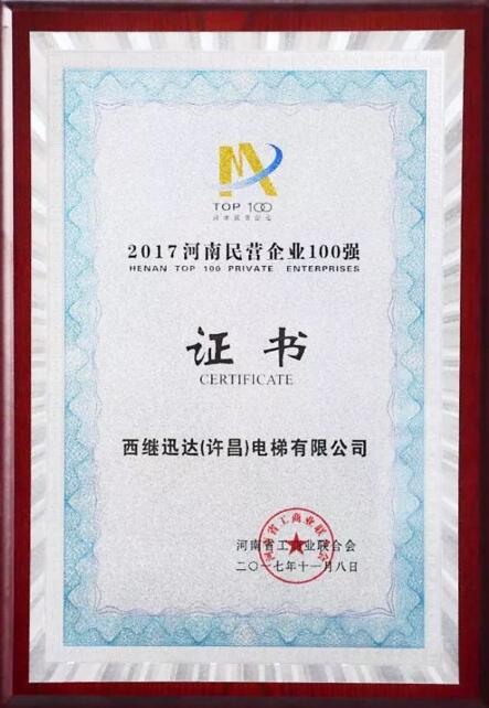 11月8日,2017河南民營企業(yè)100強(qiáng)榜單發(fā)布,同時揭曉的還有民營企業(yè)制造業(yè)100強(qiáng)榜單,西繼迅達(dá)電梯均榜上有名。