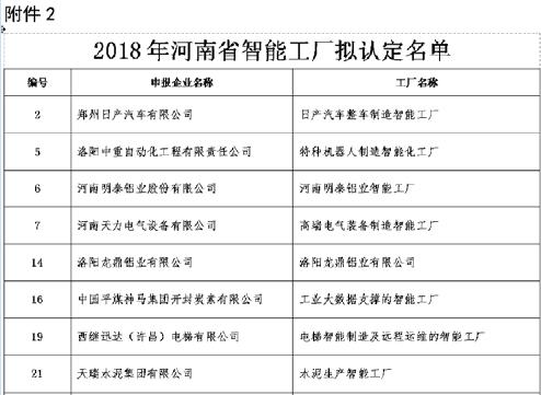 10月8日,河南省工業和信息化委員會官網發出“2018年河南省智能車間智能工廠擬認定名單公示”,西繼迅達電梯榜上有名,被認定為河南省智能工廠。