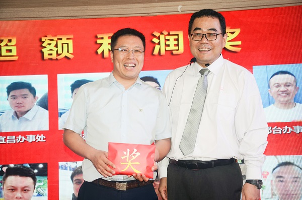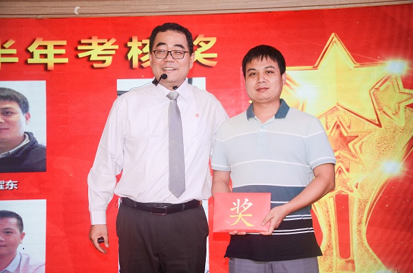 會上,西繼迅達總經(jīng)理劉剛親自為銷售經(jīng)理頒發(fā)回款獎、大包合同獎、半年考核獎、超額完成任務獎。
