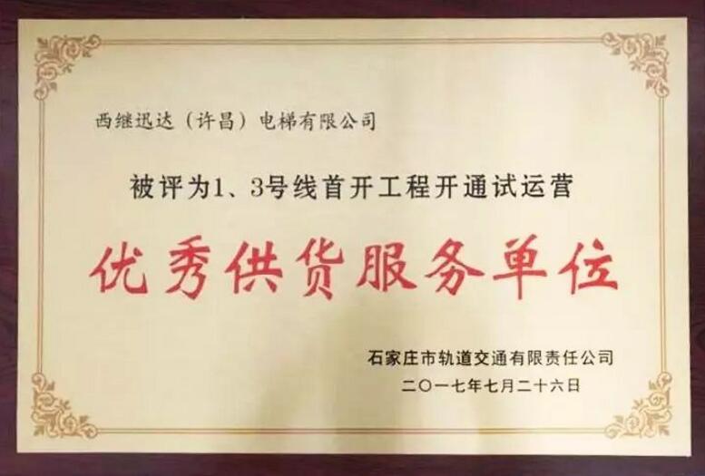 西繼迅達(dá)獲石家莊市軌道交通1、3號(hào)線高度認(rèn)可
